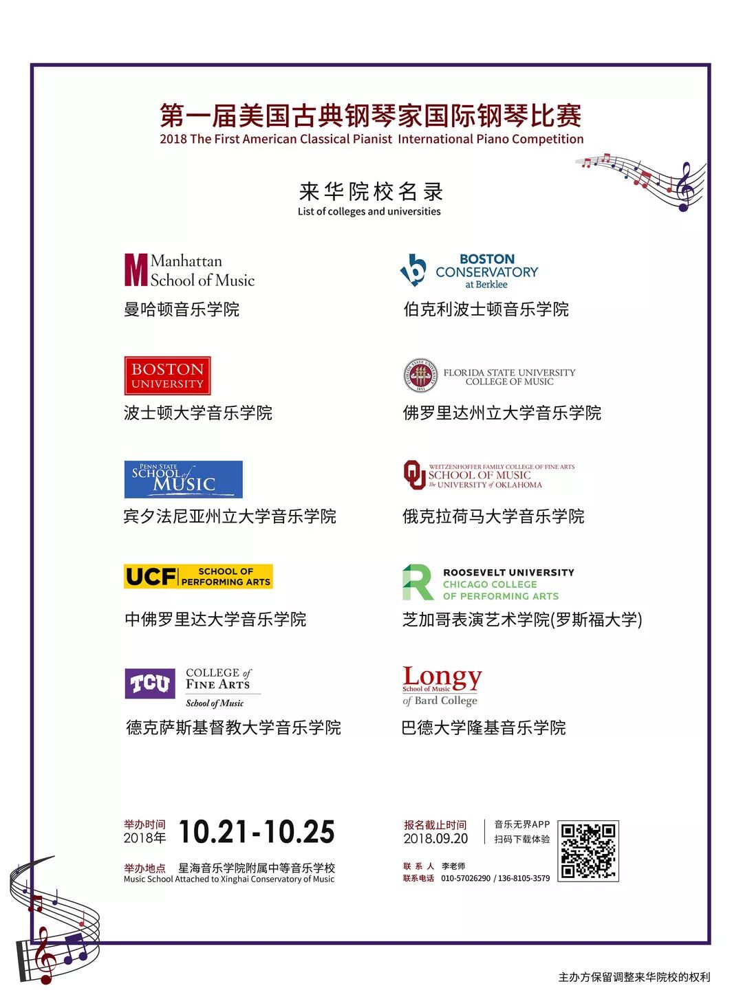 (2)晋级现场阶段比赛,参赛曲目如有更改,必须在2018年10月15日前向组委会申报,比赛期间不得更改曲目。