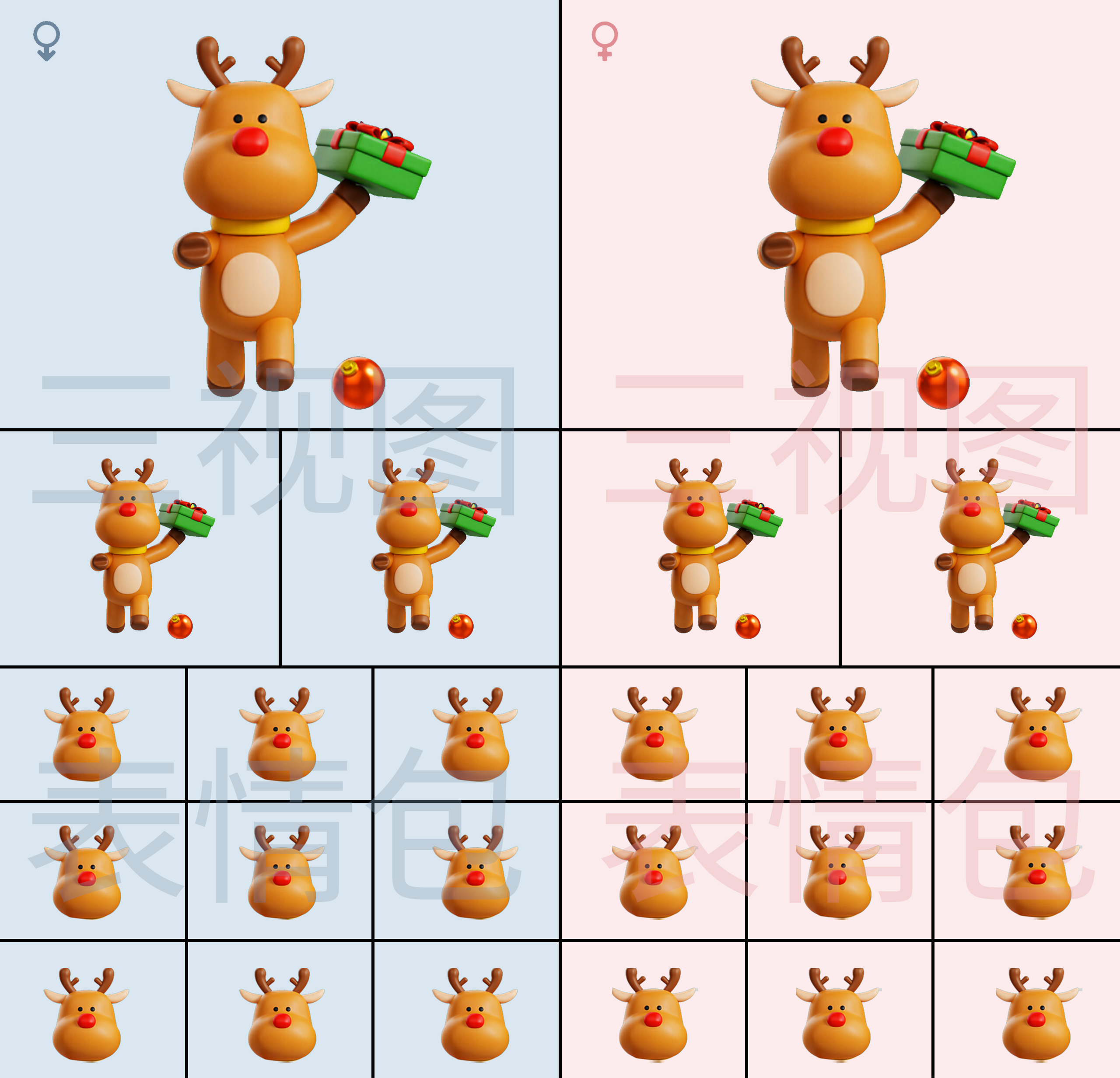 2、参赛者需要为“萌小奇”和“萌小漫”各设计1个或1个以上的形象原型(一对为一组),并为其绘制三视图及表情包(表情包数量为9-12张)。