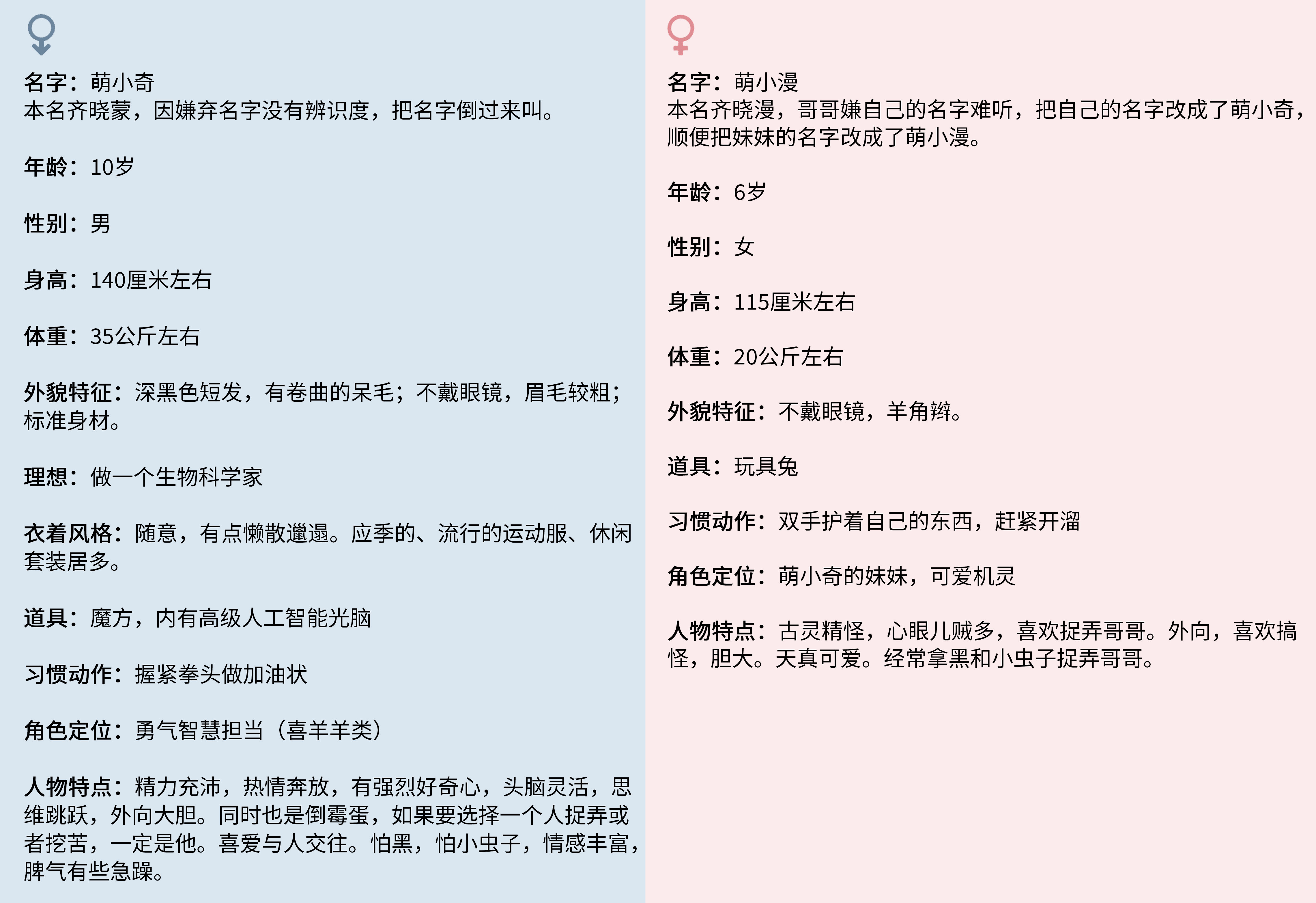 1、本次比赛目的是征集“萌小奇”和“萌小漫”的形象设计。创作前请务必仔细阅读人物设定,以更好地了解并贴合其风格调性。